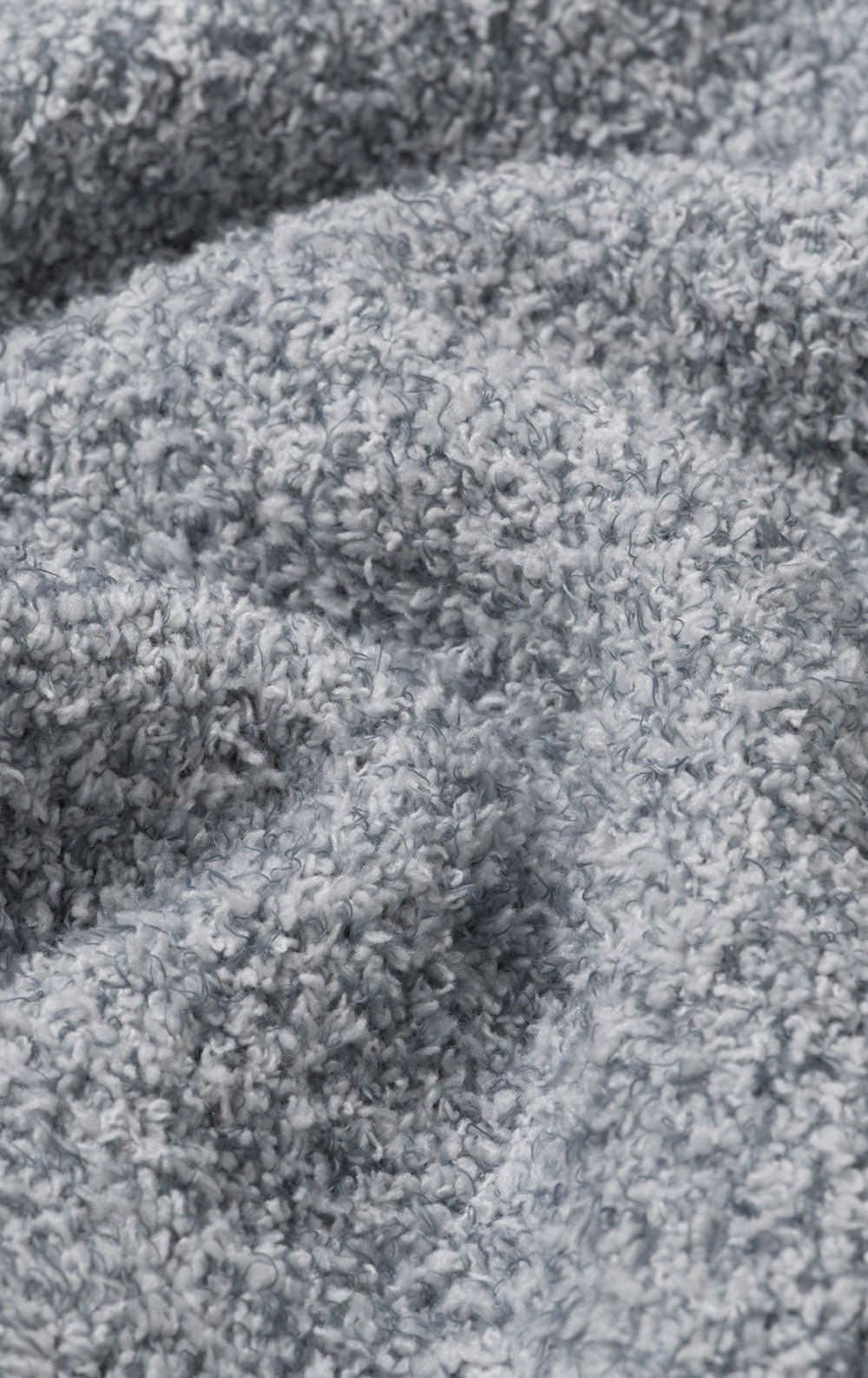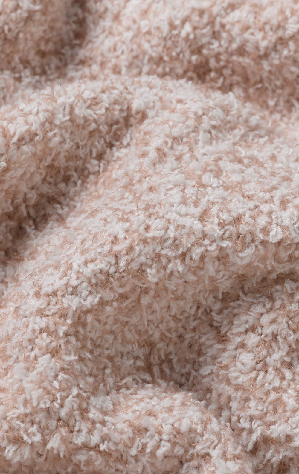 Double sided with a loose knit, this super soft popcorn sherpa material allows for airy flow as well as holds in desirable warmth.