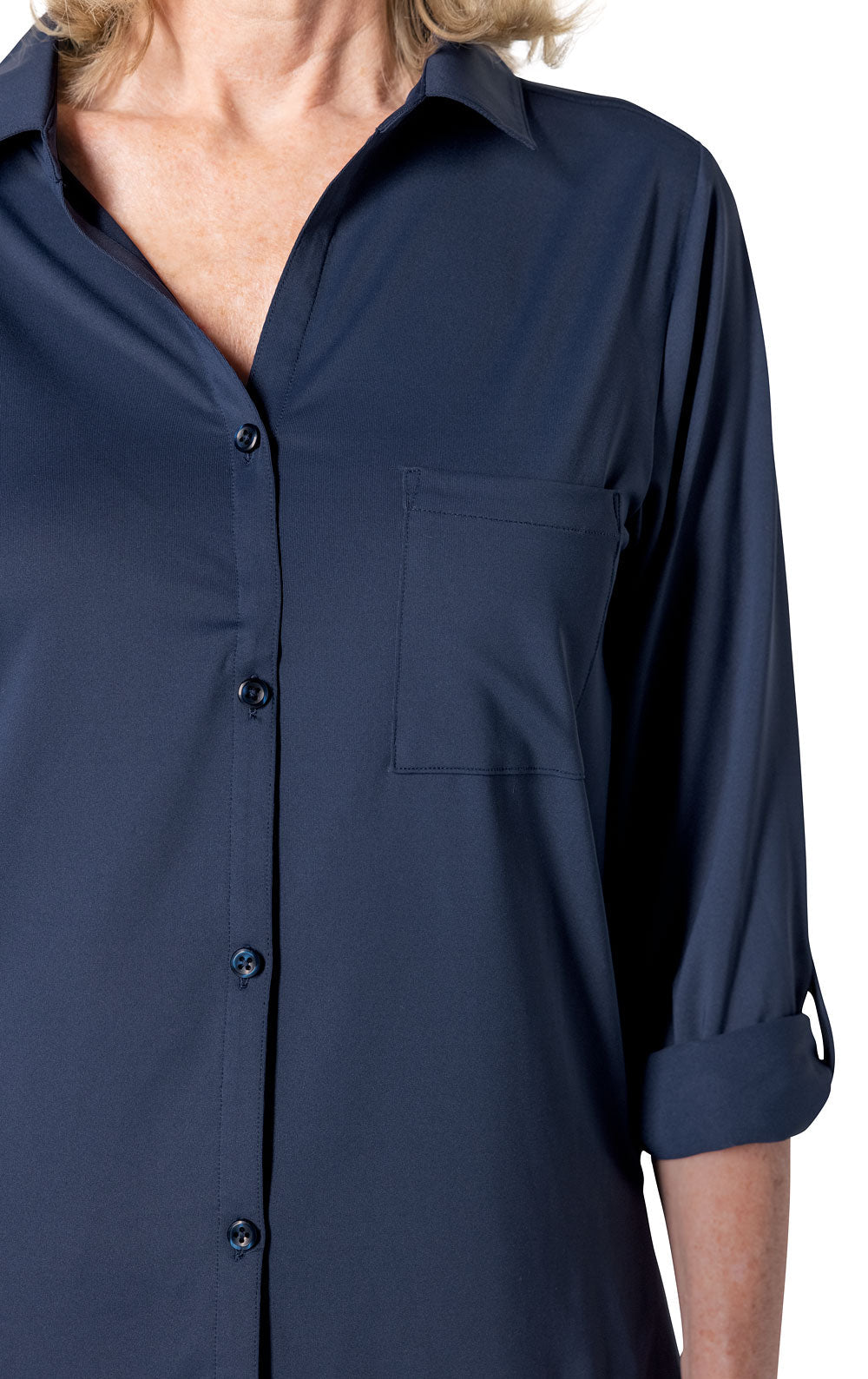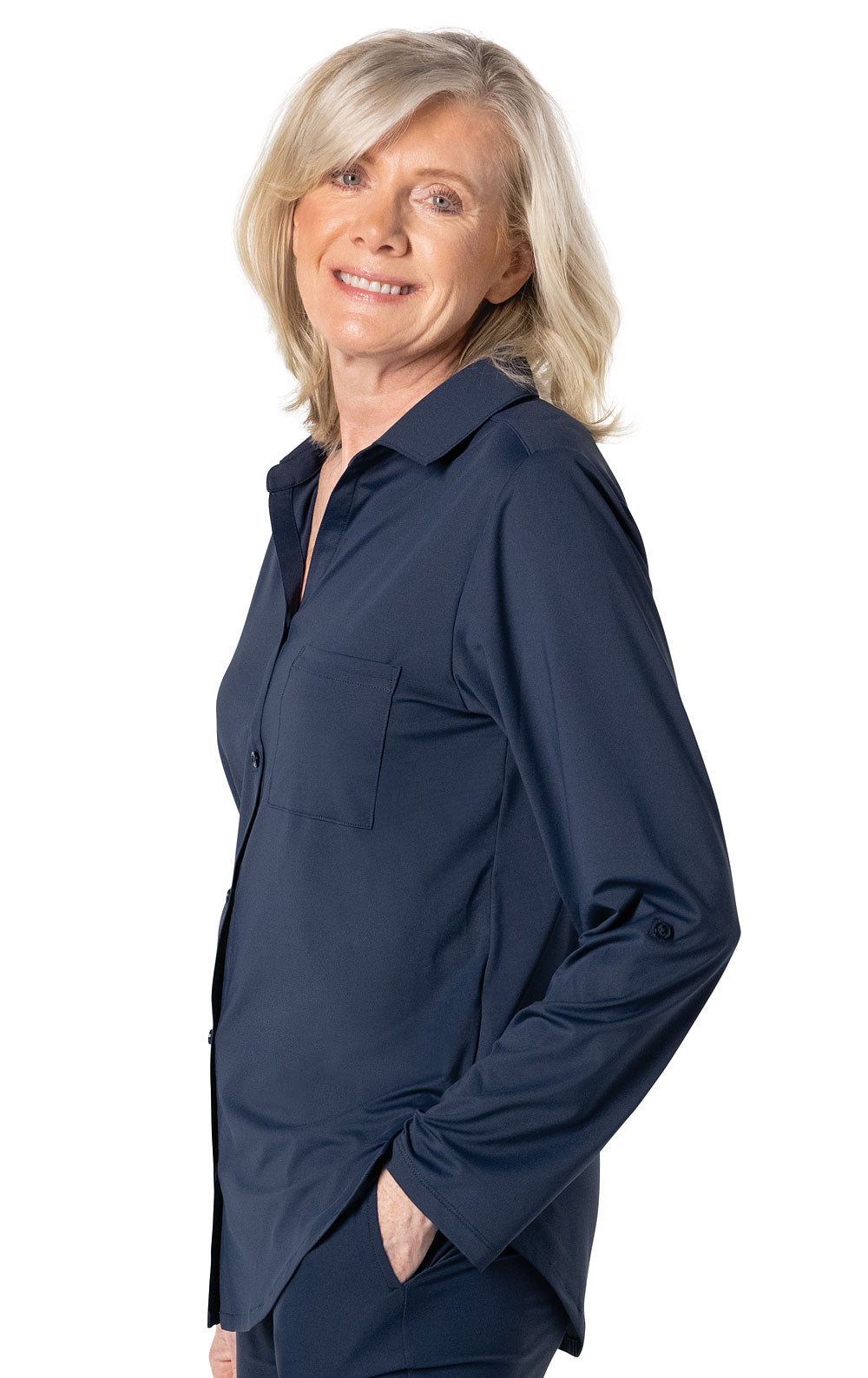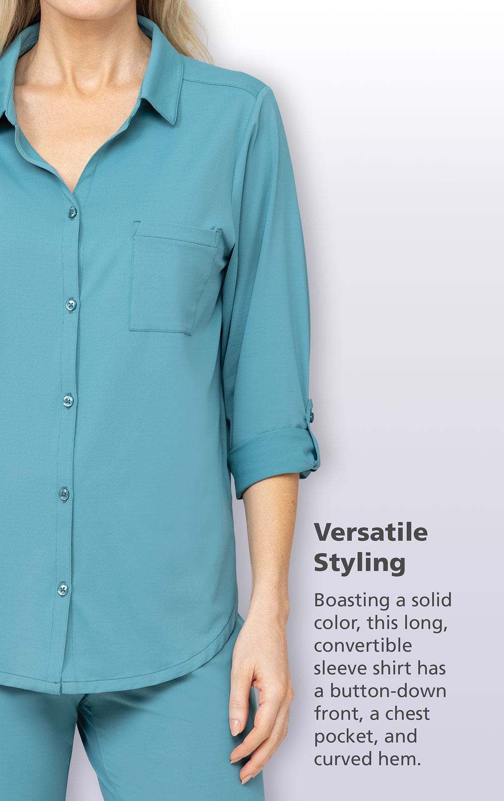 The Convertible Sleeve Cooling Pajama Shirt is a hot sleeper's dream come true. Made from a specialty brrr° Pro fabric that offers immediate, continuous chill technology, this adjustable sleeve top includes a cooling, wicking, and drying performance trifecta. That means, in the middle of the night, when warmth arises, it gets to work removing sweat and refreshing the body. And, better yet, this shirt can be mixed and matched with other Cooling Pajama separates to make the perfect set.