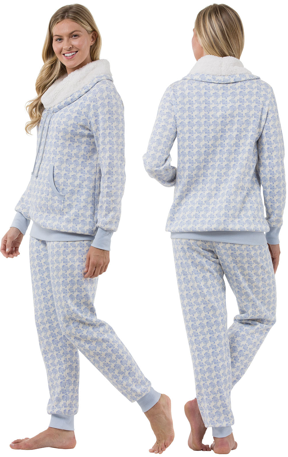 The Shearling Rollneck Pajamas combine warm, super-soft sweatshirt fabric with fleece shearling. Perfect for keeping the cold at bay, this set features a cowl-neck that can pulled up over the nose. Other details include banded bottom, waist and cuffs, elastic waist with drawstring and front kangaroo pocket. Get snuggly, slip into these pajamas.