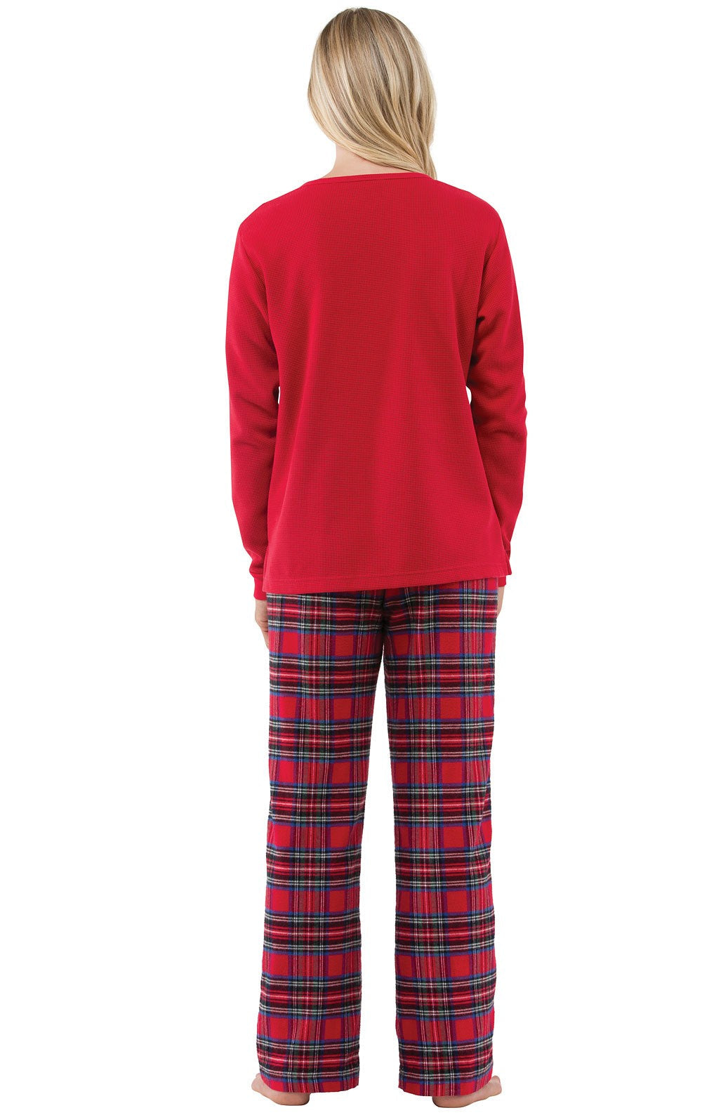 Fall asleep wrapped in love, fall asleep in the Valentine's Day Plaid Pajamas. The full-length pants are made of super-soft flannel in classic Stewart plaid and the coordinating, long-sleeved top is made of red thermal cotton and has an embroidered heart on the chest.