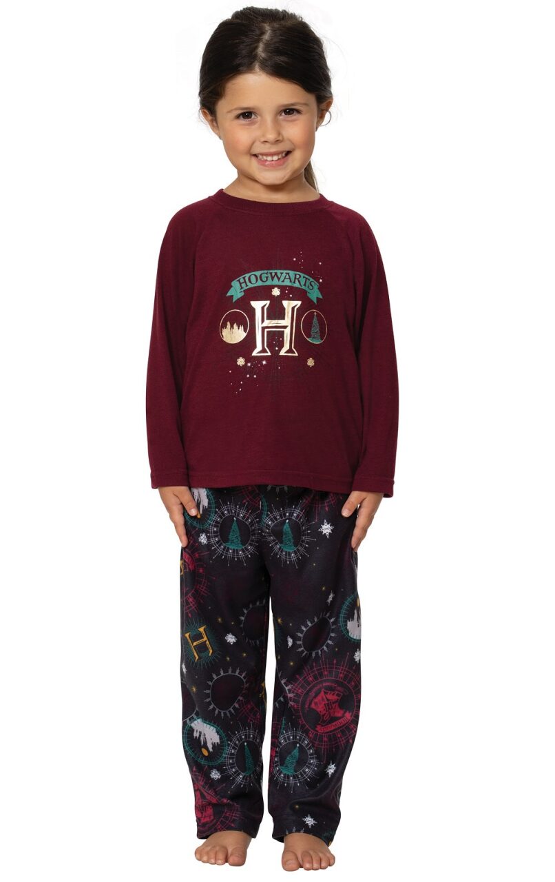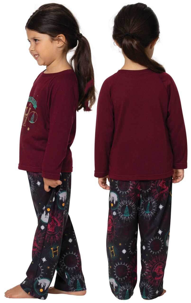 Bring the magic and mystery of Hogwarts to your home with the toddler Harry Potter Holiday Pajama set. Perfect for a movie marathon and nights spent dreaming of far-off places, it includes a long-sleeved, crew-neck top and relaxed fit, elastic waistband pants. Printed with a mix of holiday and wizard imagery, these pajamas are sure to please everyone.