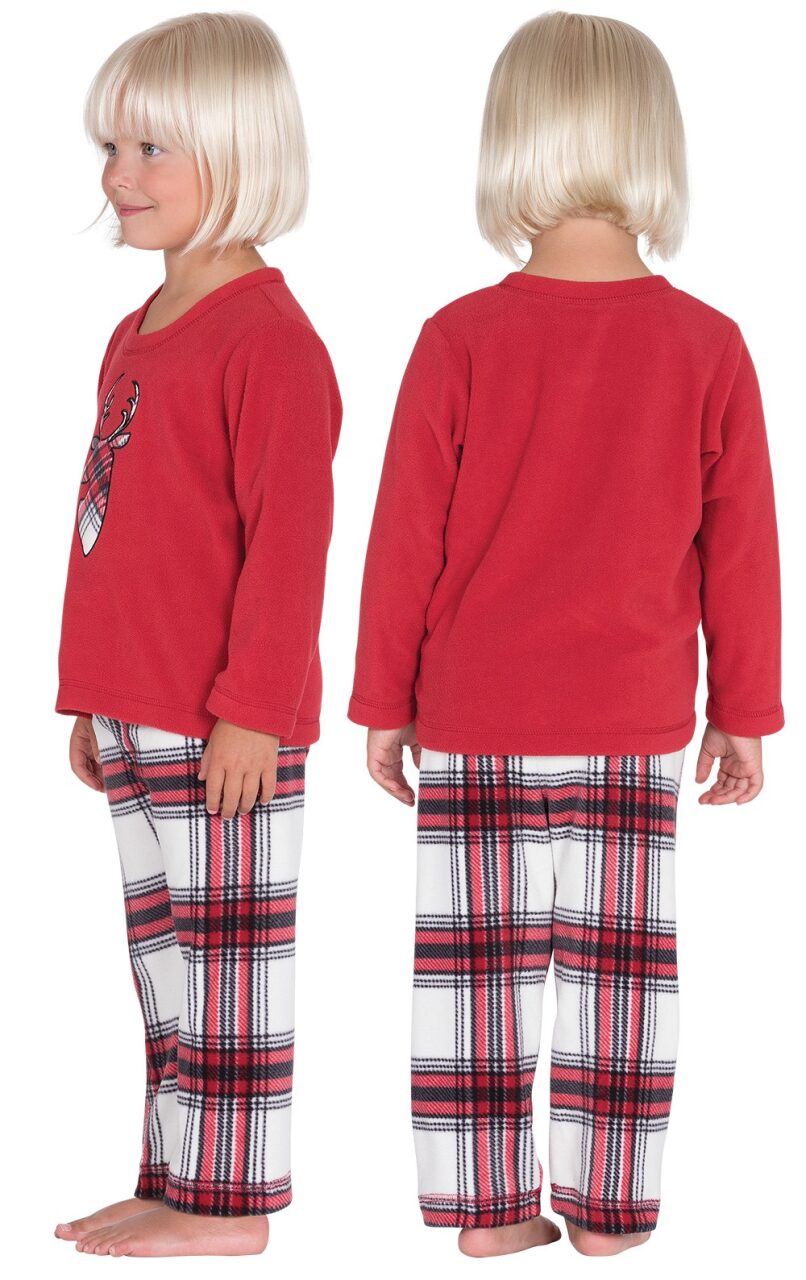 These all-fleece pajamas will keep younger ones toasty warm on cold winter nights. Rich red top features deer applique that matches the pants; bottoms are made in a festive red plaid print great for the holidays and beyond.