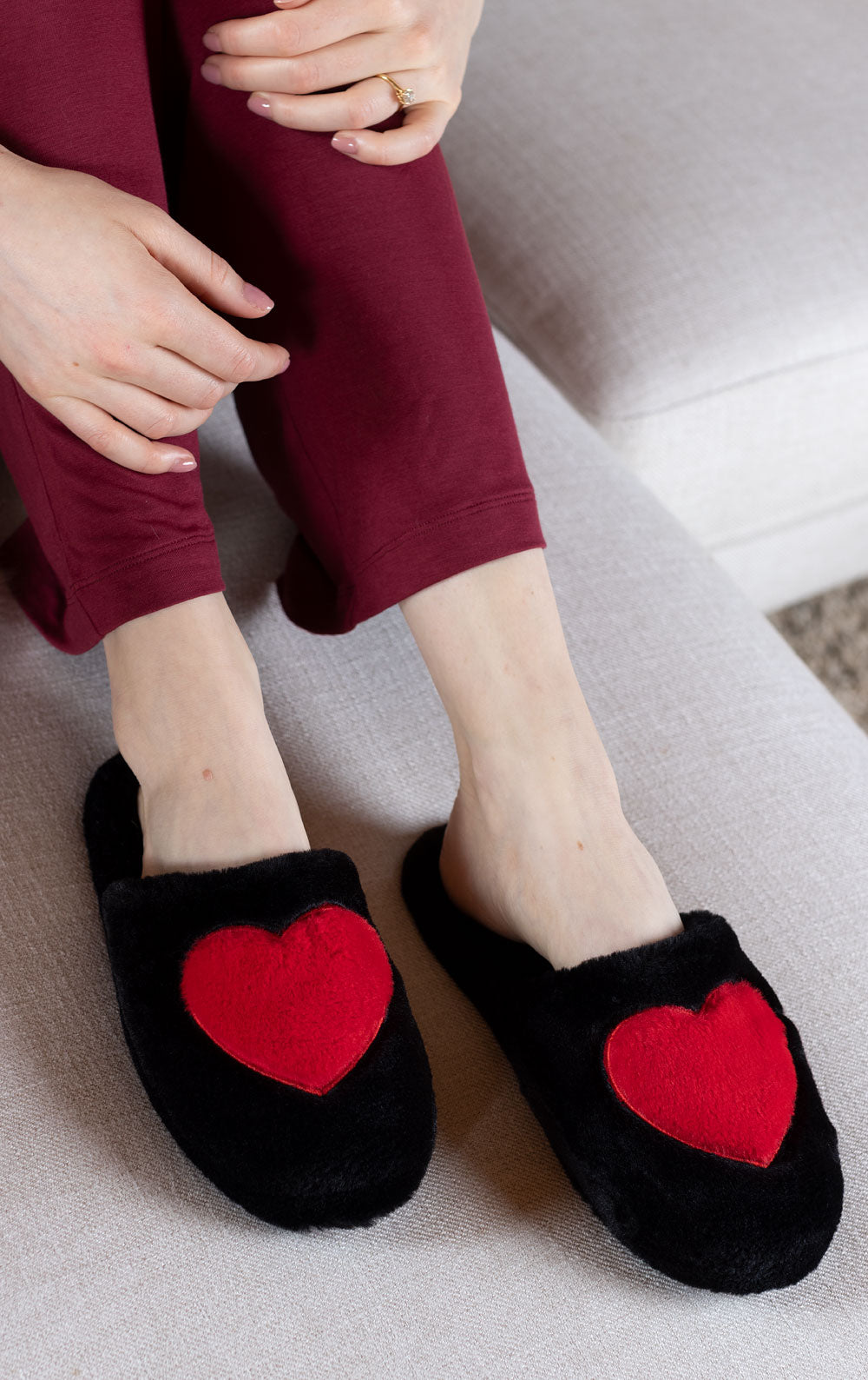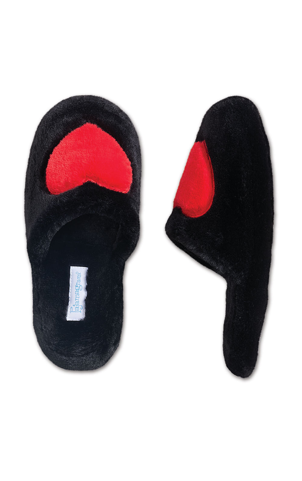 An around-the-house must-have, the Sweetheart Fleece Slippers are made of a plush, ultra-soft material for ultimate warmth. Featuring a solid black color adorned with a large red heart, these slip-on slippers are the perfect way to celebrate love, not just on Valentine's Day, but all year long.