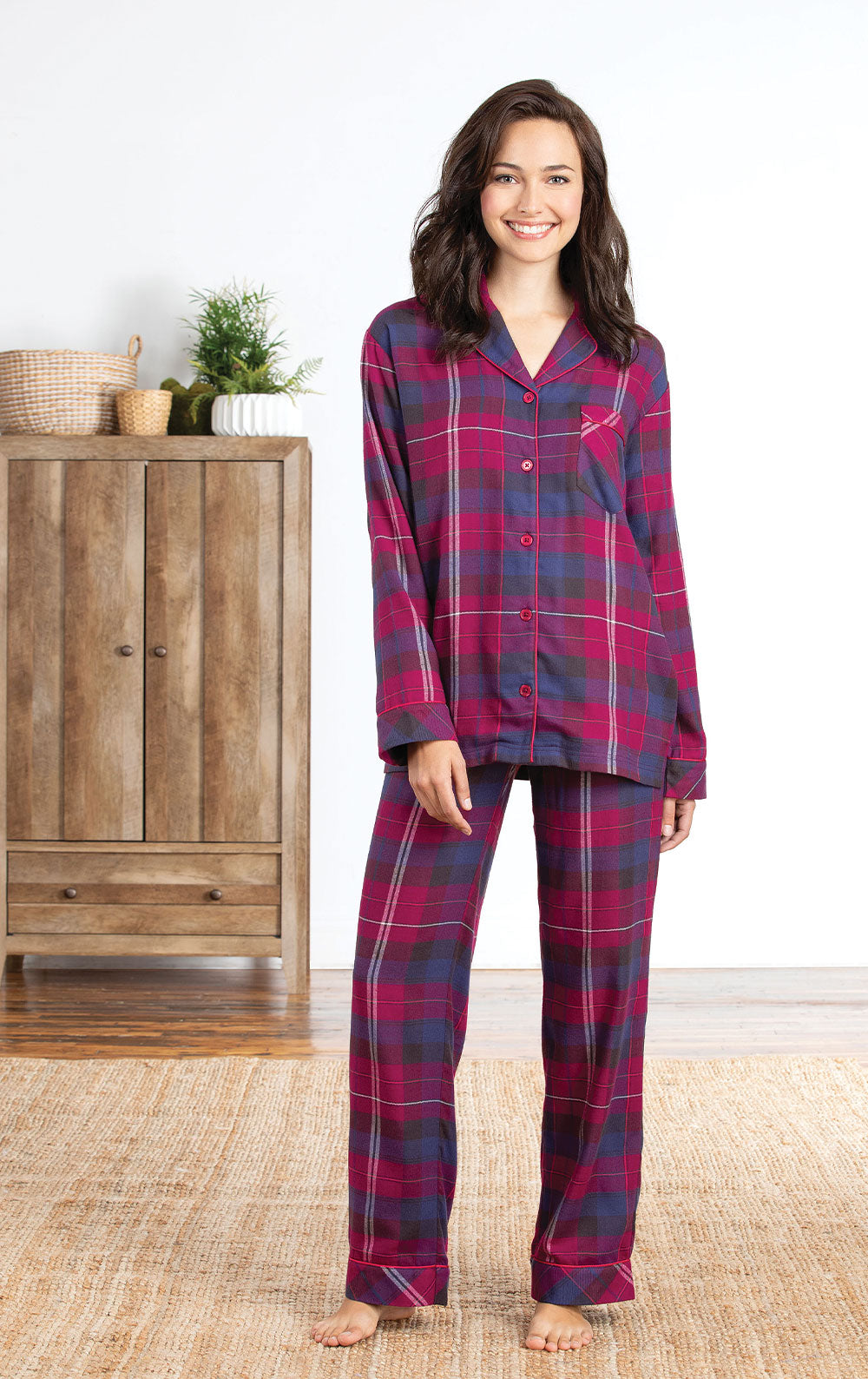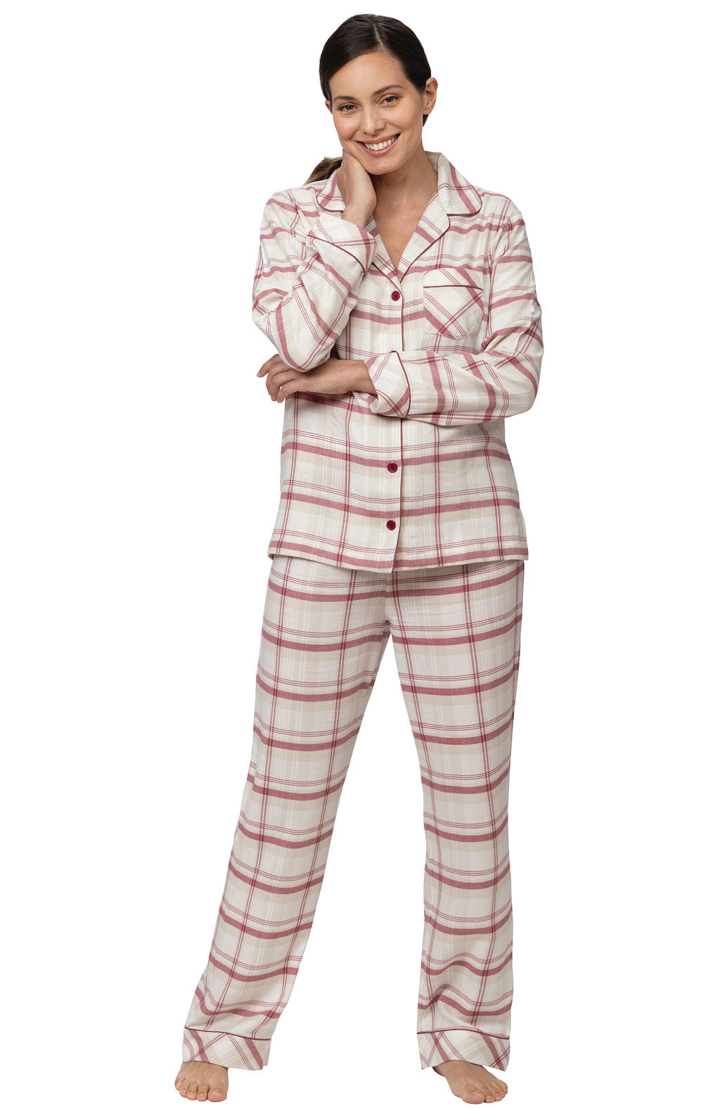 Perfect in every way, let her experience the finer side of flannel in the World's Softest Flannel Boyfriend Pajamas - just what she needs for a great night's sleep. Sumptuous, yarn-dyed, brushed flannel is lightweight, yet comfy and warm; the luxe blend of rayon in these pajamas makes them as drapey and elegant as silk. They also wash beautifully, won't pill and are a fit for all seasons. These flawless boyfriend-style pajamas are in pink plaid.