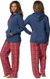 Cheers to the tradition of plaid. Our Americana Plaid Hoodie Set evokes the cozy spirit of chilly days and nights with extra soft double brushed materials paired with timeless colors and style. Designed for wear year after year, this set includes a long sleeve, kangaroo pocket, hooded sweatshirt and elastic waistband, drawstring pants. Comfort at its best, now, that sounds like the perfect way to relax.
