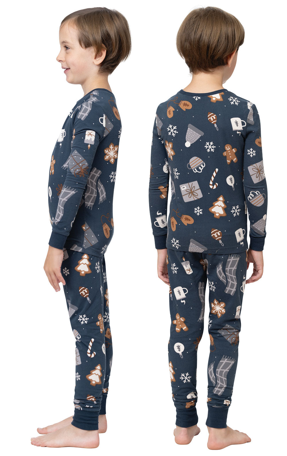 Our Sweet Comforts Pullover Kids Pajamas make relaxing and enjoying life's quieter pleasures extra cozy. Featuring a premium, stretch cotton, this snug-fitting set includes a crew neck, long sleeve top, and ribbed, elastic waistband leggings. Complete with a pattern of gingerbread men, candy, presents, and more, these pajamas are the epitome of sweet, sweet comforts.