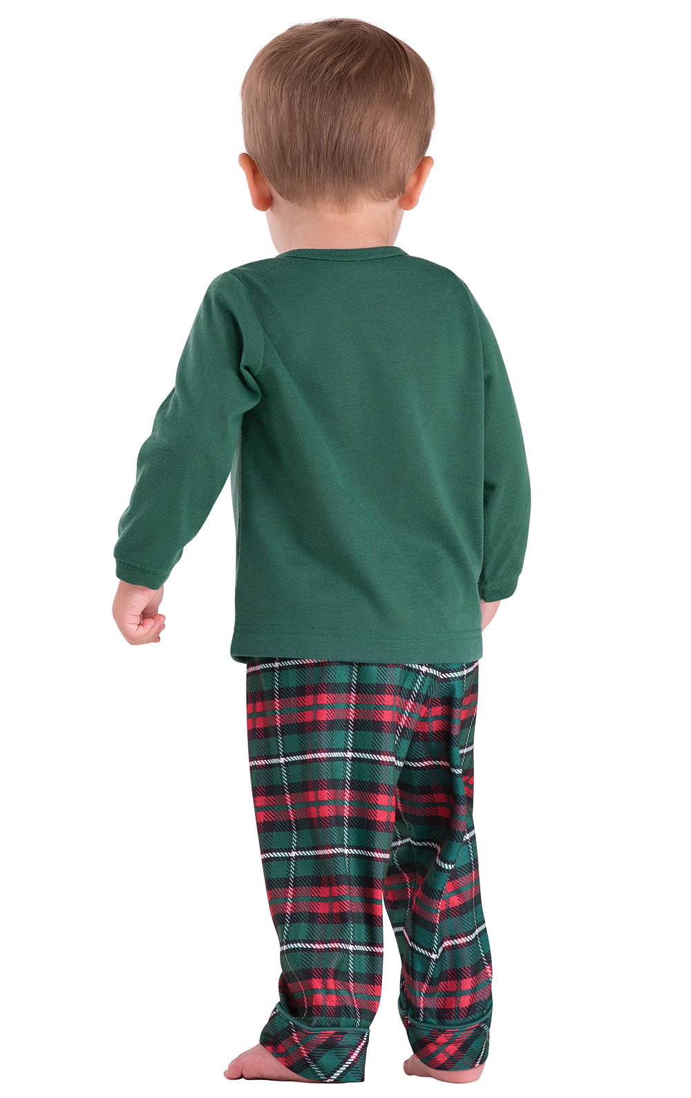 Cozy up in festive style in the Christmas Plaid Flannel Infant Pajamas. Meticulously designed with comfort and a touch of holiday cheer, this two-piece set features a solid green, flame resistant jersey, long sleeve, lapped shoulder top and red with green plaid, flame resistant flannel, elastic waistband, faux drawstring pants. The epitome of warmth and joy, there is nothing better than snuggling close on chilly nights and merry mornings in these premium pajamas.