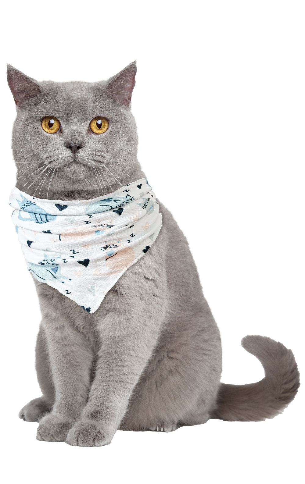 This pet bandana in white is purrrfect for any fur baby! A solid color bandana on one side while the other side features adorable cats with hearts on a white background. This bandana complements the Purrrfect Mom Pet Pajama Set in white.